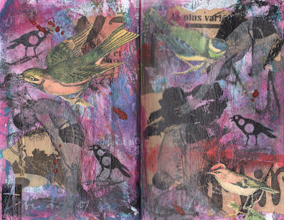 If you look back on this blog you will see other silhouettes that I have created using a variety of mixed media techniques. Some of those silhouettes are collaged ones or just black images. My friend, Terry Garrett, creates backgrounds with silhouettes using an airbrush technique. Brian Kasstle has used silhouettes in some of his work. It is an effective and fun technique to use. You might even remember the show Mad Men used silhouettes in the opening credits for the show. So you see the possibilities are unlimited.