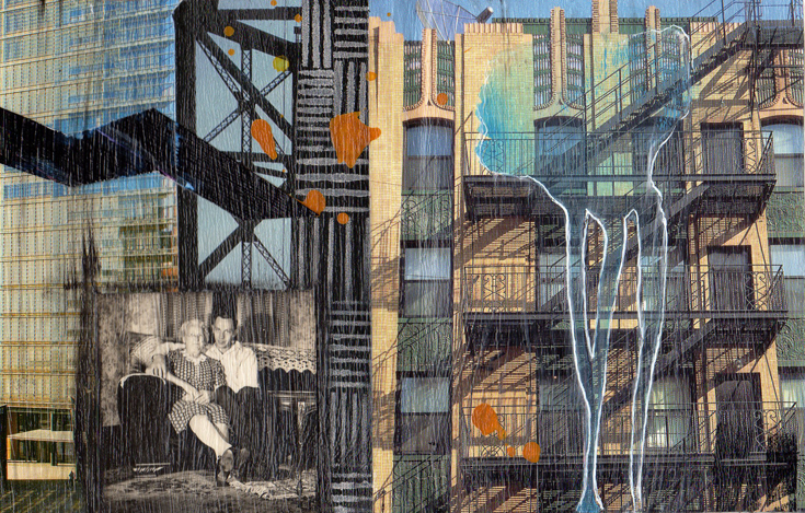 I had a blast of a time Friday. Several friends came over to have open studio time in my garage. It is just fun to sit and chat and work on art. I almost completed 14 new pieces yesterday. What a productive day! The new series which piggy-backs on this architectural series will begin being published on this blog soon.