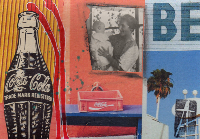 I do not know where the original Bette photograph was taken. Irene and Jacki who I visited in California both took photos of the "Bette" photo when we were in the Long Beach Art Museum last month for me. It was included in an artist's work that I really liked. As you know I love the disparate and including the photo with the elephants makes me smile. When I work I audition and audition until I get a composition that I like or that seems to work and this one is one that fits into the like category.